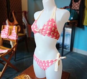 Bikini e costumi interi, realizzati in morbide lycre che non segnano la figura, ma sostengono nei punti giusti grazie ad un taglio sapiente. Tanti modelli per adeguarsi a fisicità diverse, cuciti meticolosamente a mano, quasi tutti double-face.