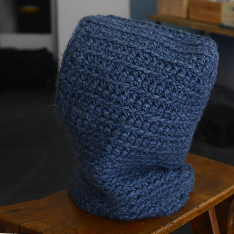 Balaclava fatto a mano all'uncinetto, in lana e alpaca. Vestibilità morbida, aderenza media. Taglia unica