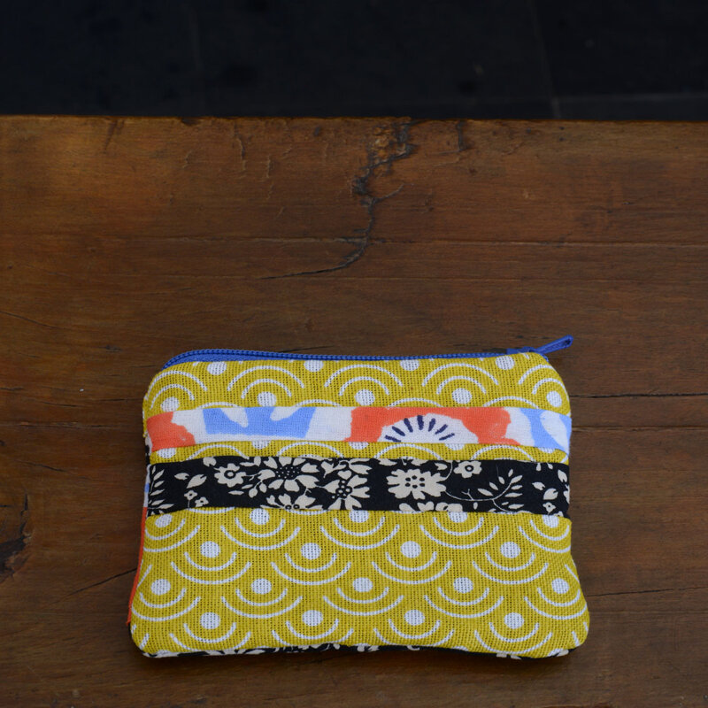 Piccolo portamonete in cotone, inserto in tessuto indiano fiorato.