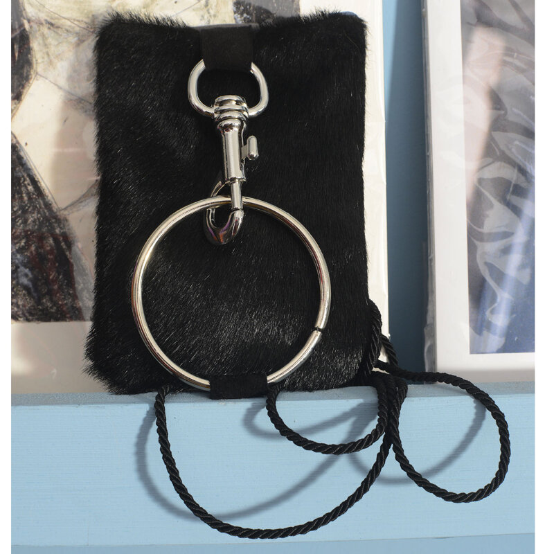 Borsetta in cavallino, con fibbia in metallo nichelato, tracolla in cordino sottile a torchon.