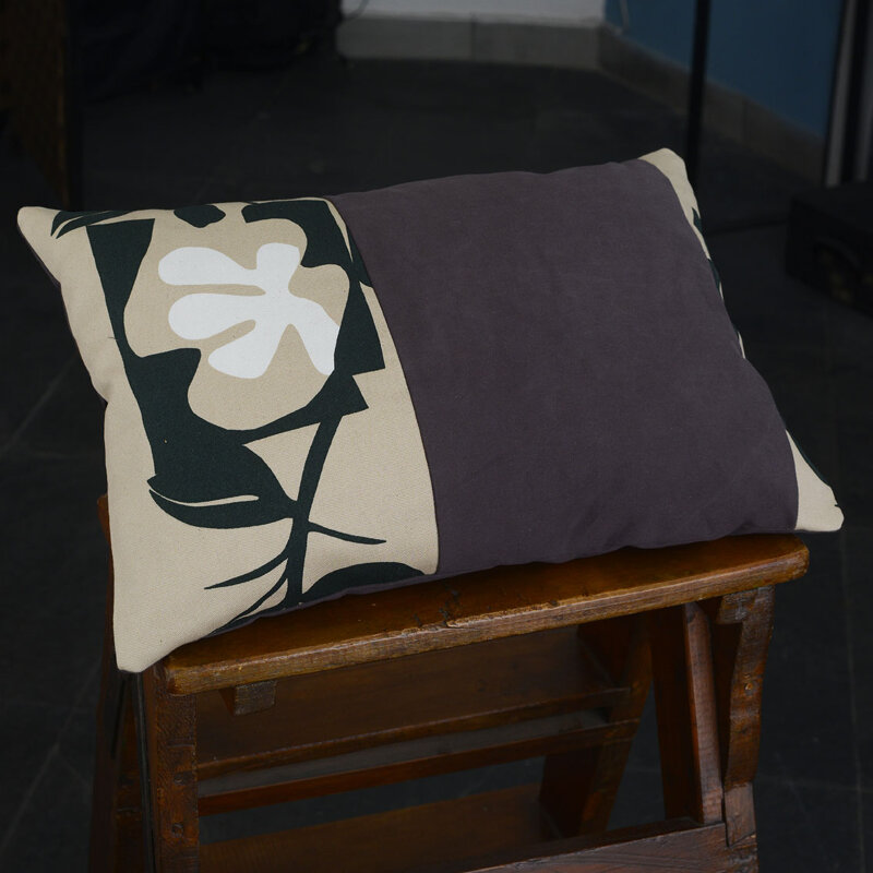 Cuscino sfoderabile in cotone pesante con inserti in tessuto Marimekko.