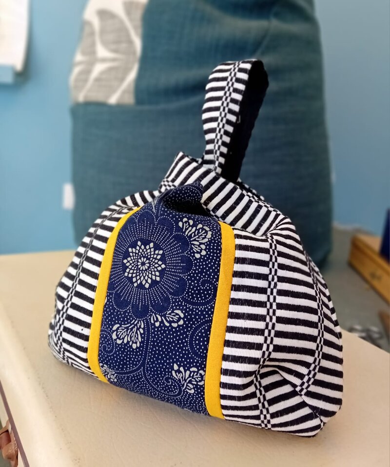 Borsetta in tela "bisaccia" sarda con inserto in cotone giapponese.